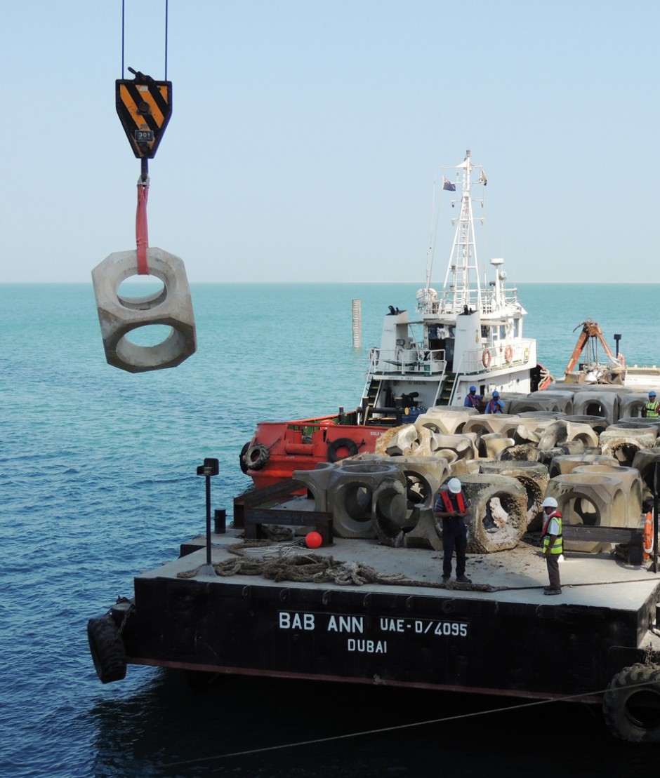 The Burj Al Arab is the iconic 7-star hotel located on a man-made island in Dubai. The reinforcement of 1,500 SHED concrete armor units protecting the Burj al Arab was required, as part of their maintenance programme.