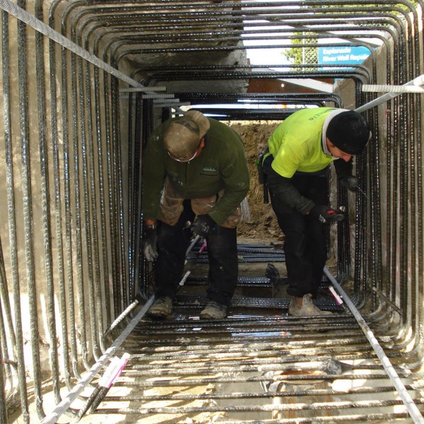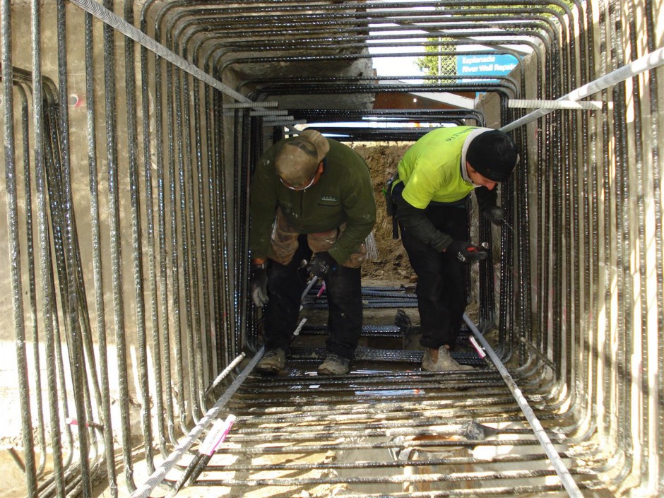 A significant benefit to the contractor was the lightness and cleaner surface of the Mateenbar™ which allowed for easier installation and tying. Mateenbar™ being 1/4 of the weight of steel, the 8m lengths of #10 (32mm) rebars were easily installed by 1-2 people.