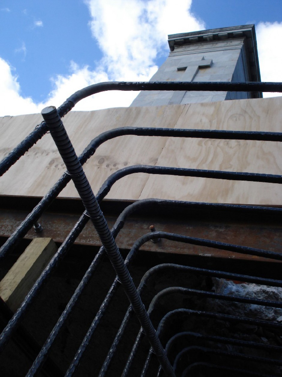 The consultants ensured the repairs were undertaken to give longevity and minimize any need for future repairs. A significant feature of the remedial work, was to ensure that the Cenotaph was not damaged through long term corrosion of any reinforcing present. As a result, Mateenbar™ was specified for the stirrups and longitudinal steel reinforcing the foundations. Unlike steel, Mateenbar™ doesn not need any extra form of corrosion protection – an important feature considering the salinity of the Cenotaph’s coastal location.