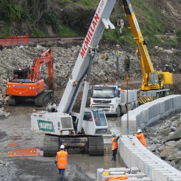 Many of the seawall foundations sit under the high tide mark, with changes in sea levels the design allows for future retrofitting for extra height if needed. With a design life cycle of 100 years, the seawall will offer sustainable protection to the road and rail system along this rugged coastal route.