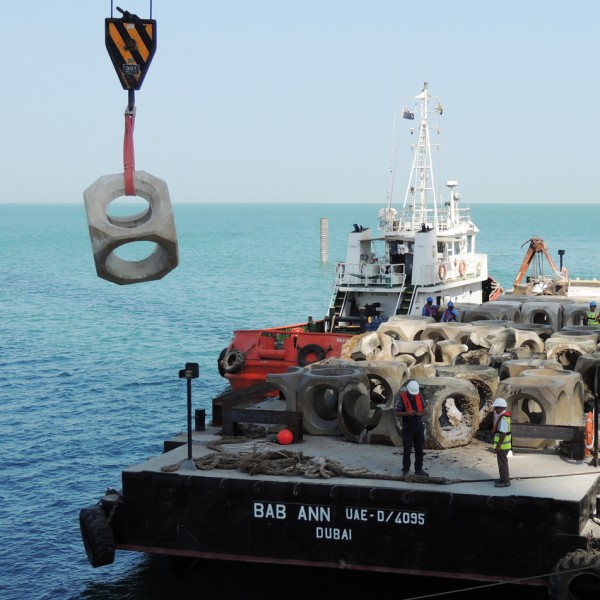 The Burj Al Arab is the iconic 7-star hotel located on a man-made island in Dubai. The reinforcement of 1,500 SHED concrete armor units protecting the Burj al Arab was required, as part of their maintenance programme.
