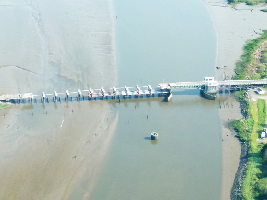 The Old Youngs Bay Bridge across Youngs Bay in Astoria, Oregon is a cantilever bridge made up of two 75-foot leaves with a total span of 1,766 feet.