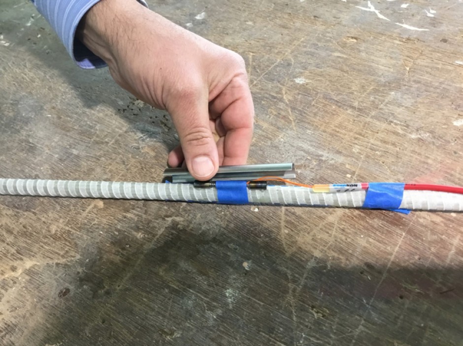 Glass fiber-reinforced polymer (GFRP) rebar was used to provide the best life cycle outcomes. Mateenbar™ was selected to provide reinforcement for the concrete slab as it provides: